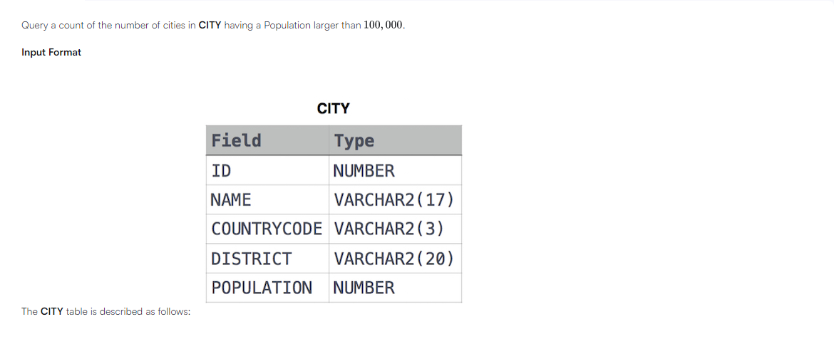 WHERE POPULATION > 100000