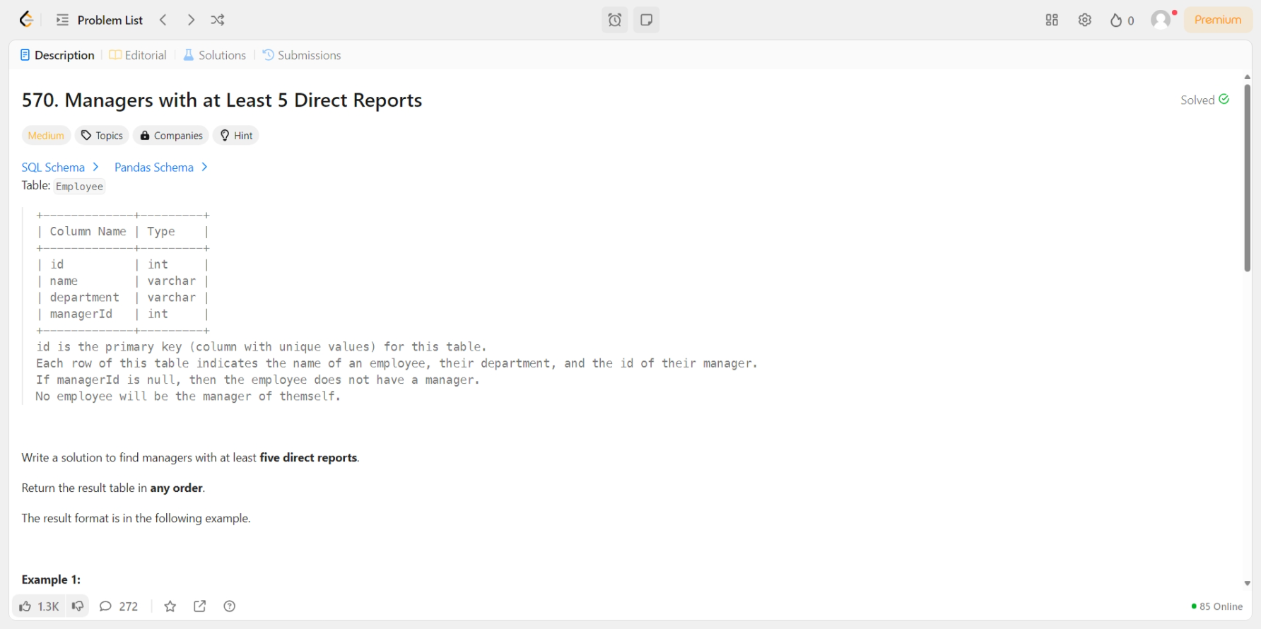 INNER JOIN Employee AS m ON e.managerId = m.id