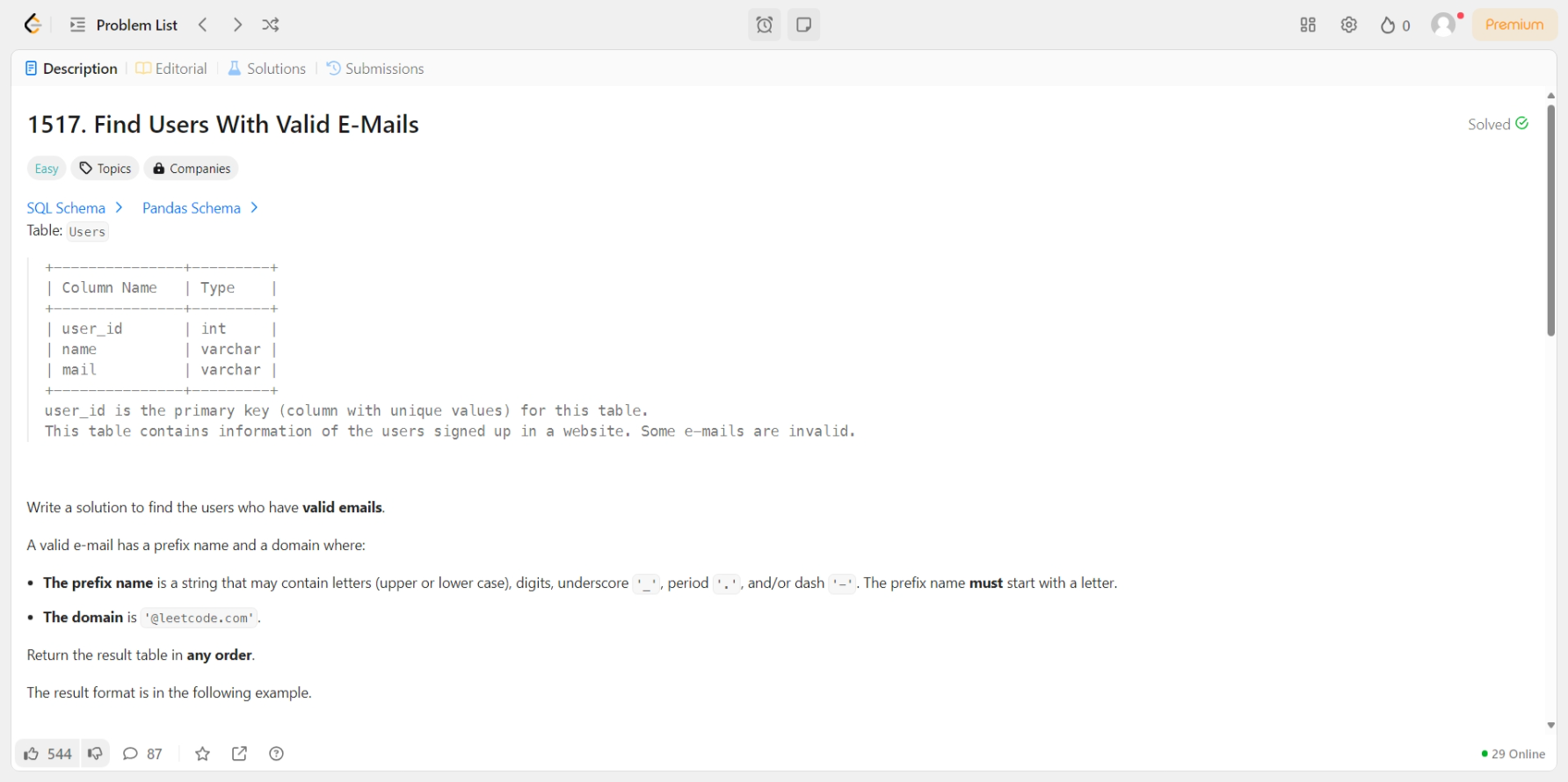 [LeetCode] 1517. Find Users With Valid E-Mails [문제] [MySQL]SELECT *FROM UsersWHERE mail REGEXP '^[a-zA-Z][a-zA-Z0-9_.-]*@leetcode[.]com$' SQL/LeetCode 2025.02.20