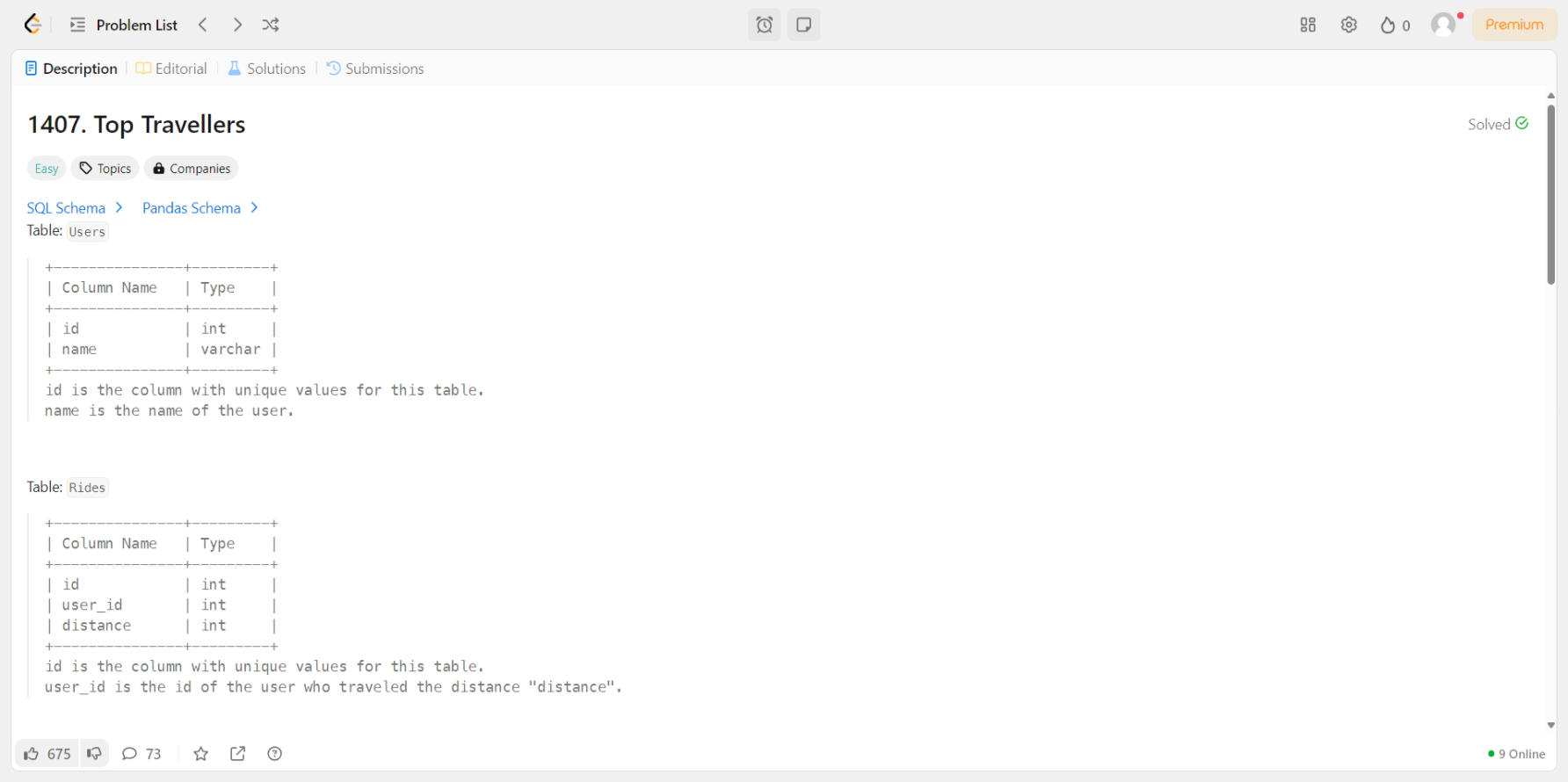 [LeetCode] 1407. Top Travellers [문제] [MySQL]SELECT u.name , IFNULL(SUM(r.distance), 0) AS travelled_distanceFROM Users AS u LEFT JOIN Rides AS r ON u.id = r.user_idGROUP BY u.idORDER BY travelled_distance DESC, name ASC SQL/LeetCode 2025.02.20